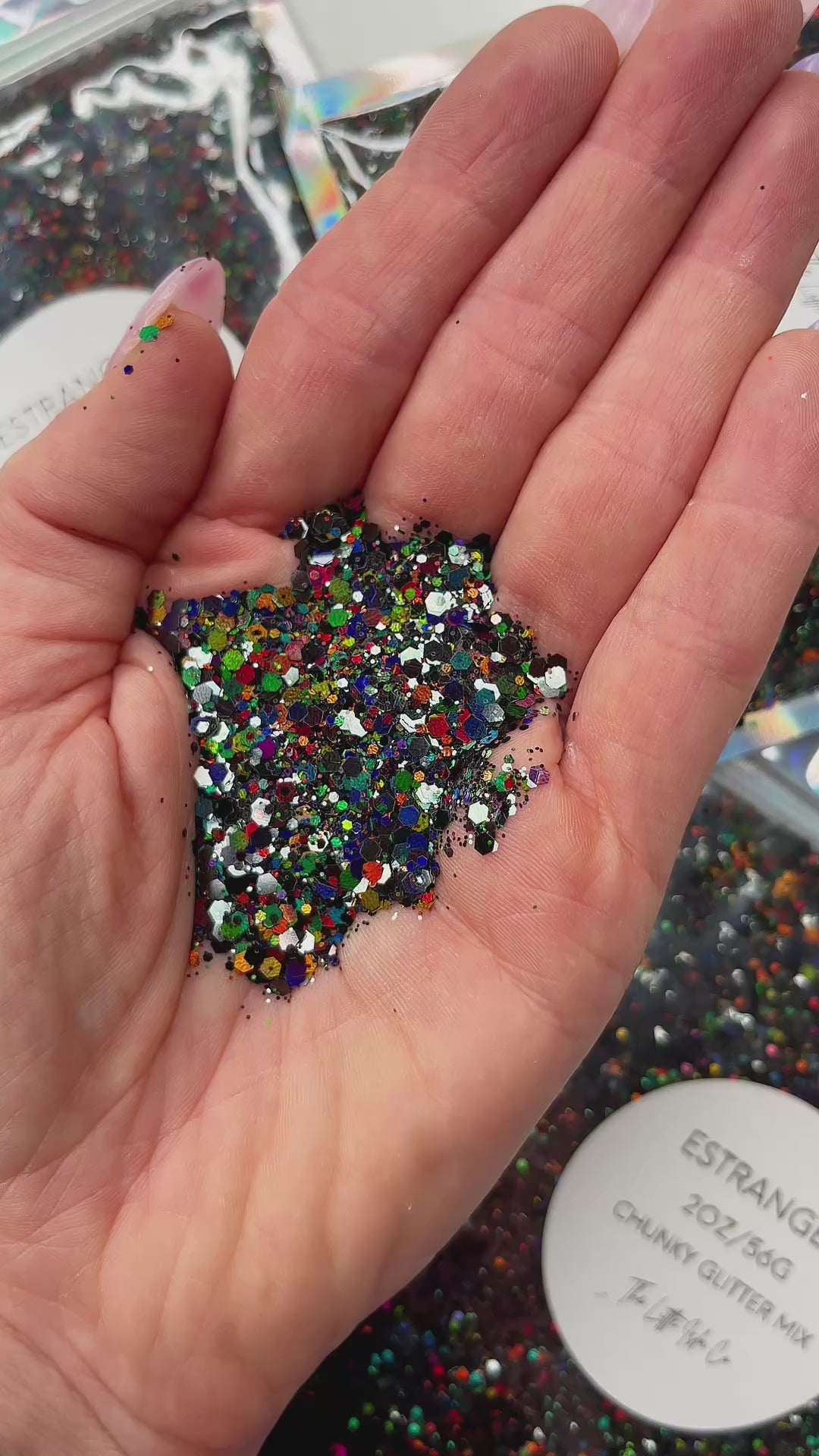 This is a holographic black glitter in a chunky, fine and ultra-fine mix.