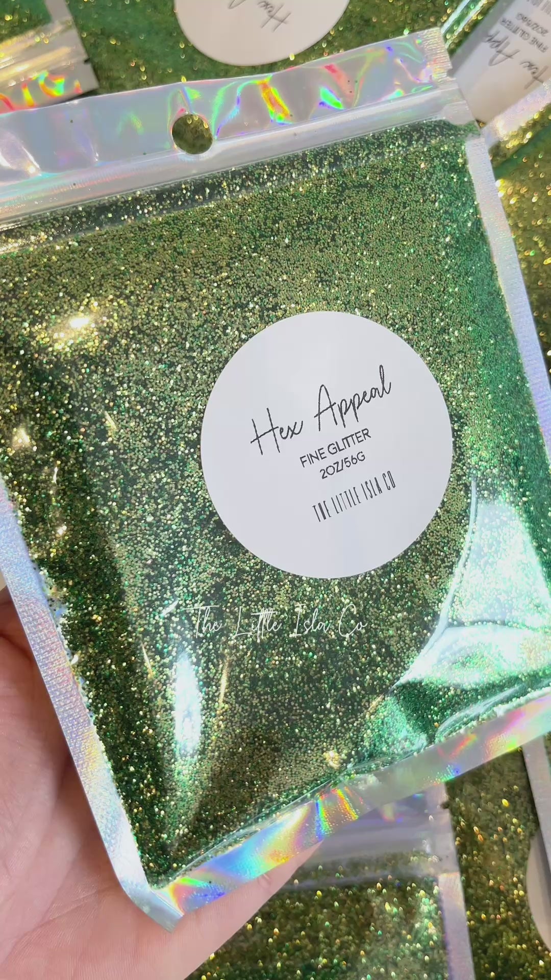 This is a light green/dark green colour-shifting fine glitter. It is the SAME COLOUR as the chunky mix with the SAME NAME.