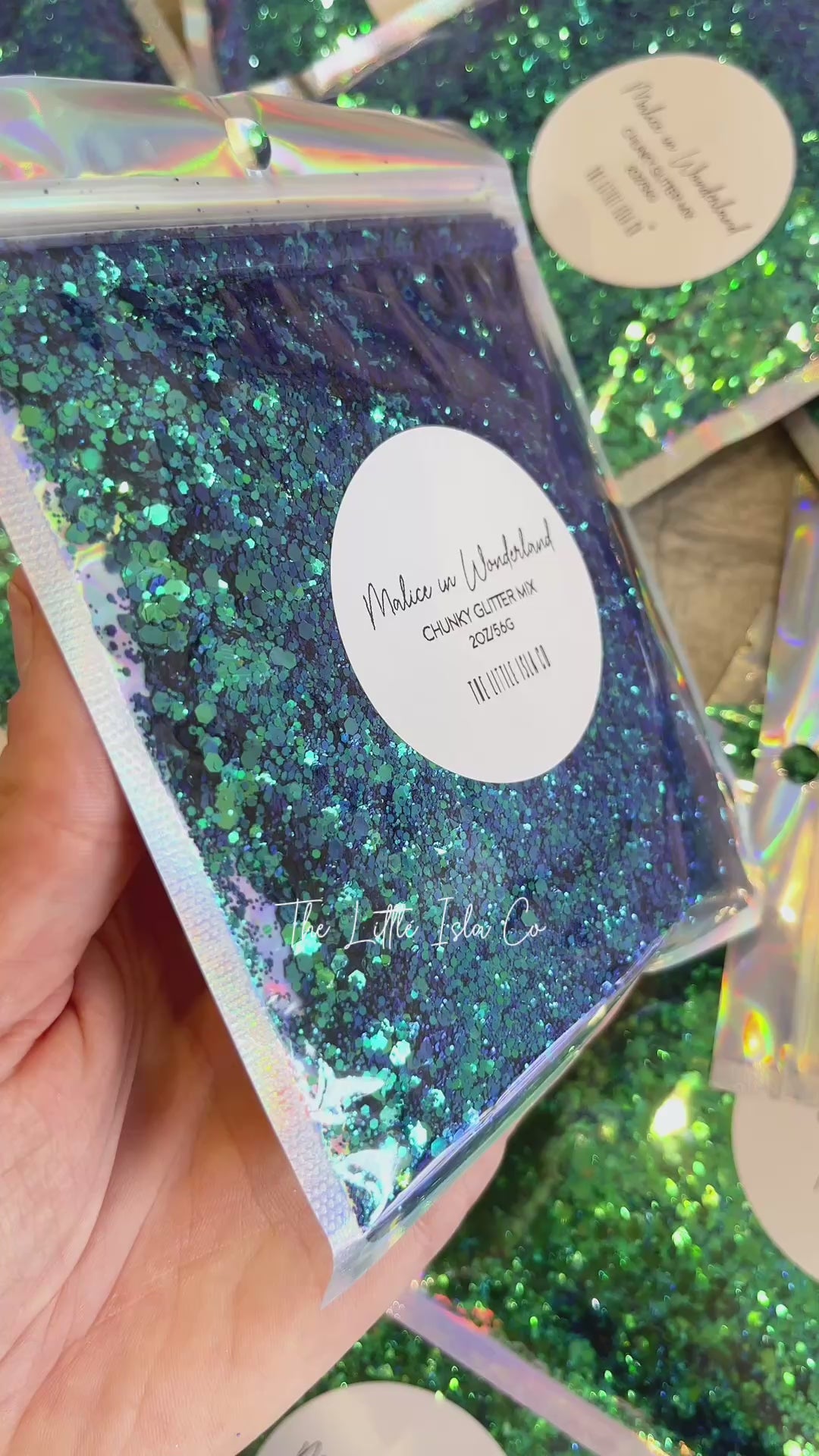 This is a blue/green colour-shifting chunky, fine and ultra-fine glitter mix.
