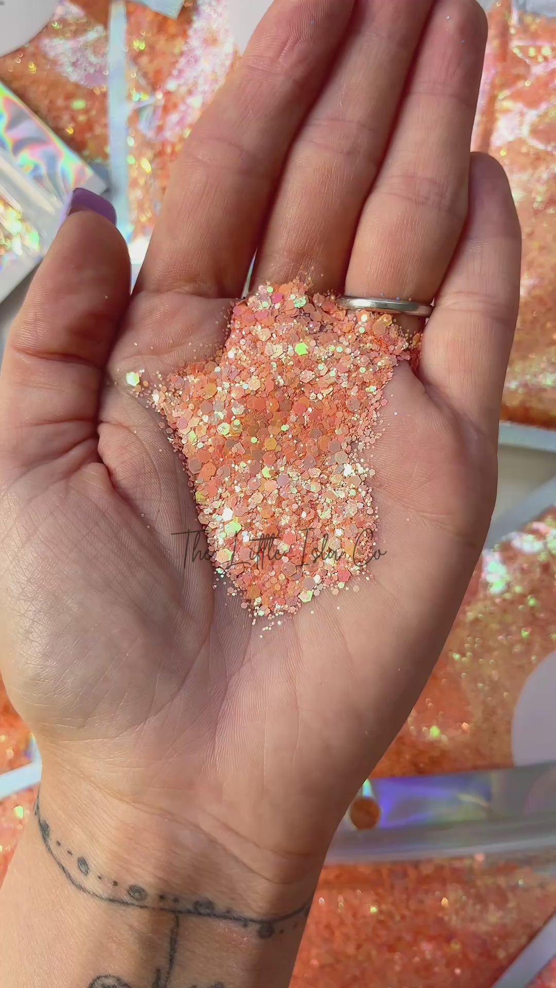 This is an iridescent orange glitter. This mix has a combination of chunky, fine and ultra-fine glitter.