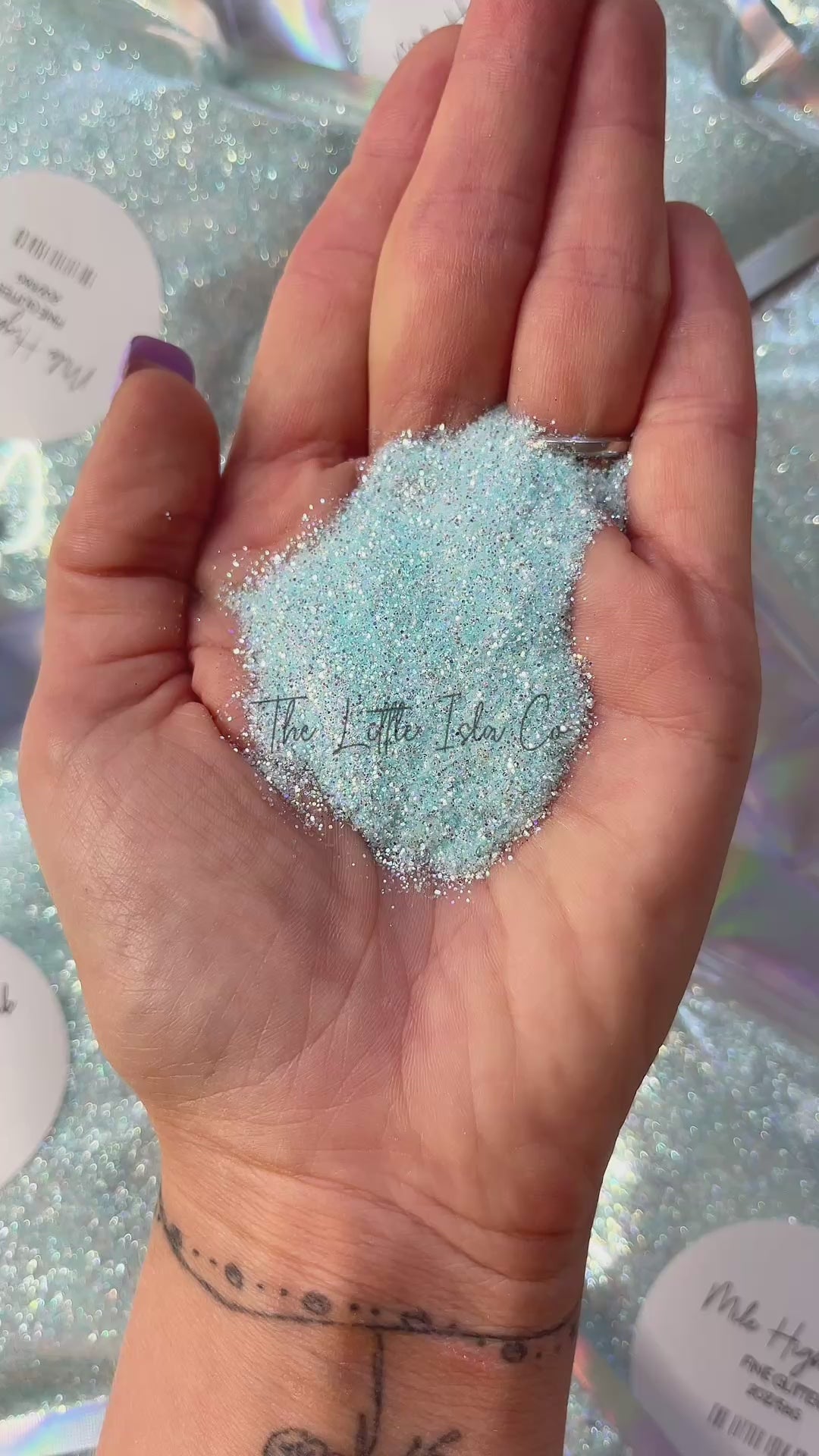 This is a pastel blue fine glitter with holographic reflects, in a 2oz/56g pack.