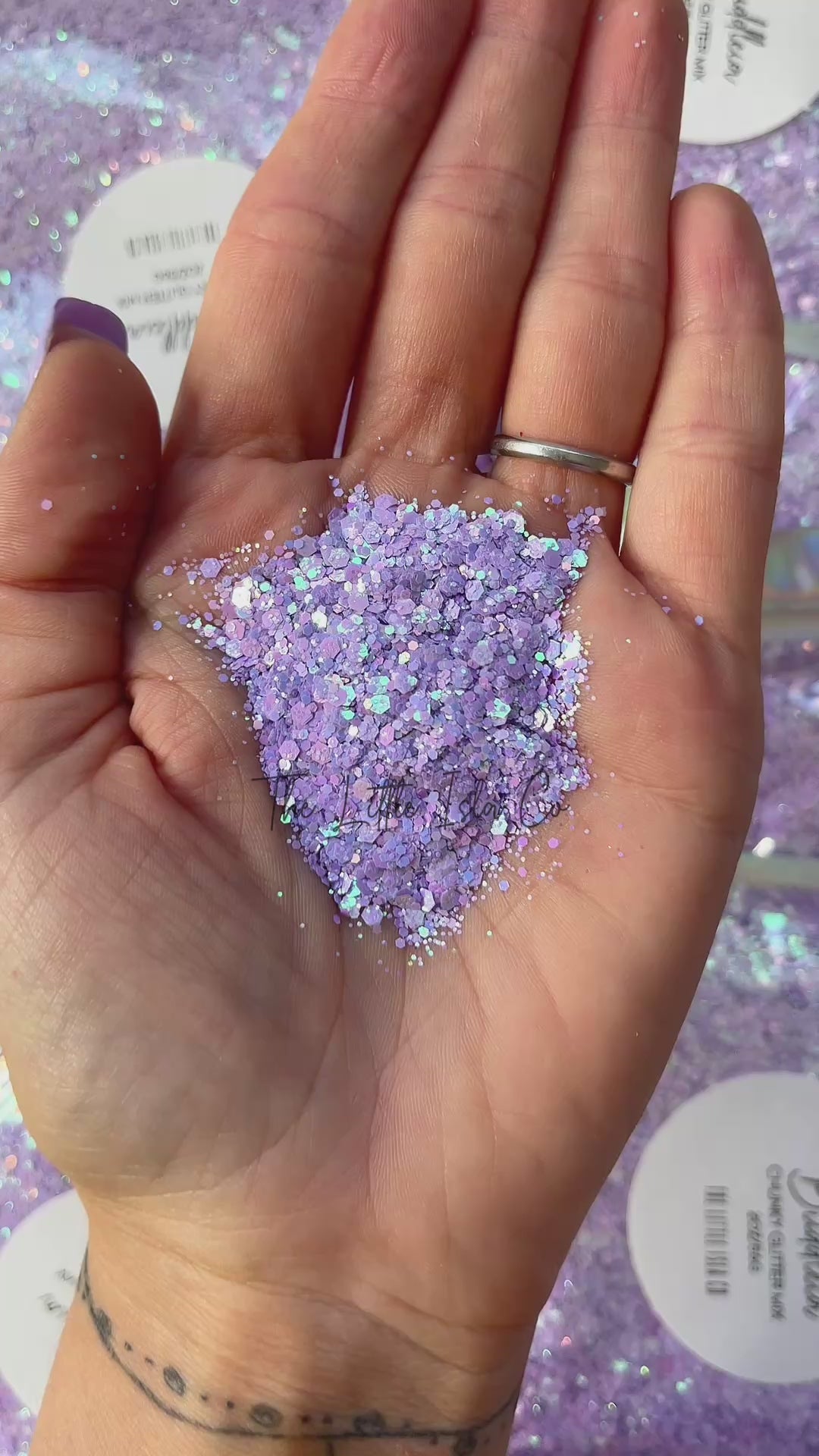 This is an iridescent lilac glitter. This mix has a combination of chunky, fine and ultra-fine glitter.