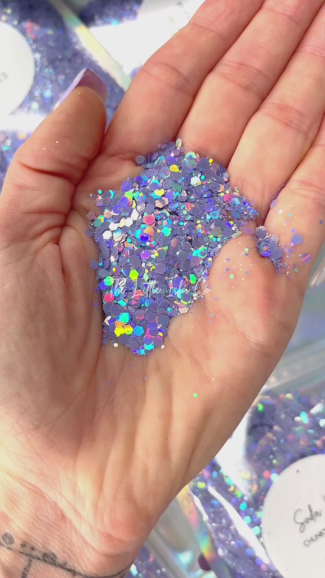 This is a purple glitter with an iridescent rainbow sheen, in a chunky, fine and ultra-fine glitter mix.