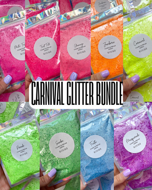 A collection of bold & bright fluorescent coloured chunky glitters!