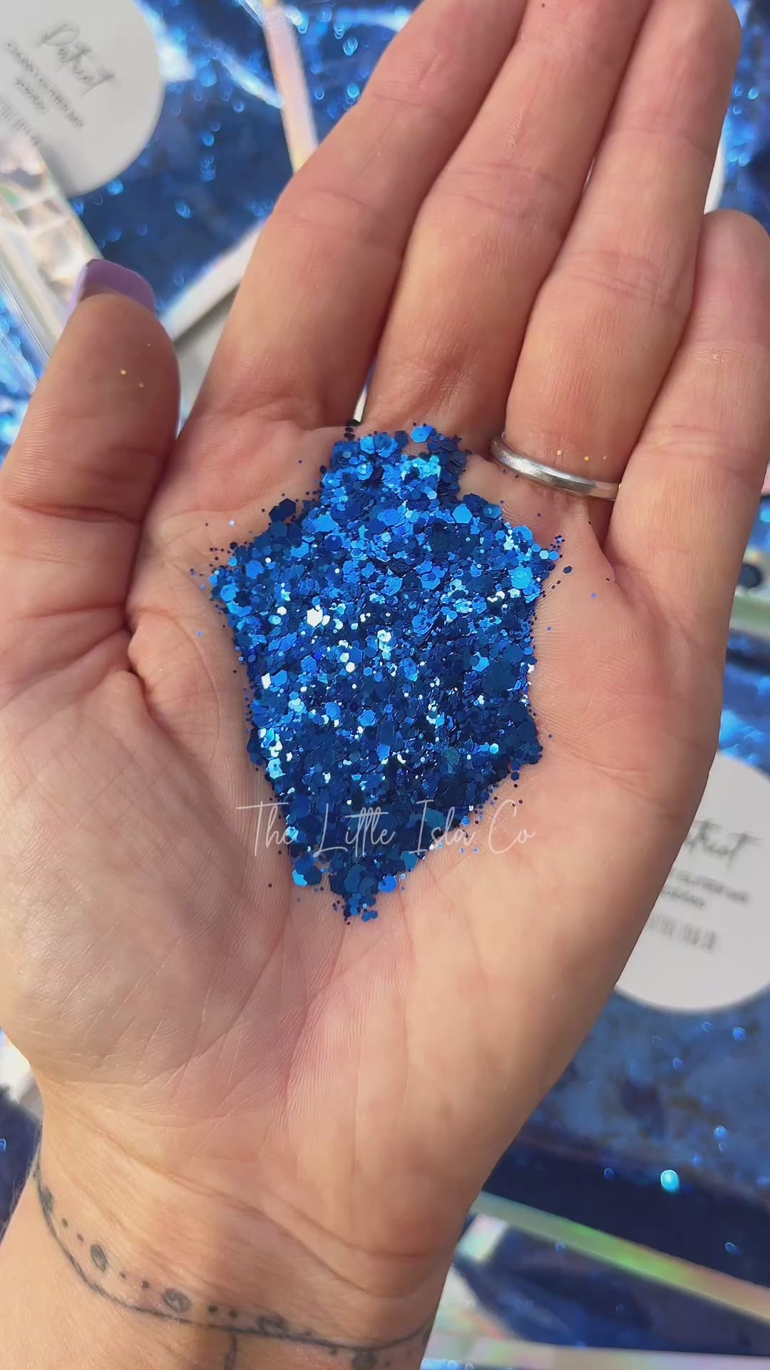 This is a metallic bold blue chunky glitter mix, in a combination of 3 cut sizes - chunky, fine and ultra-fine glitter.